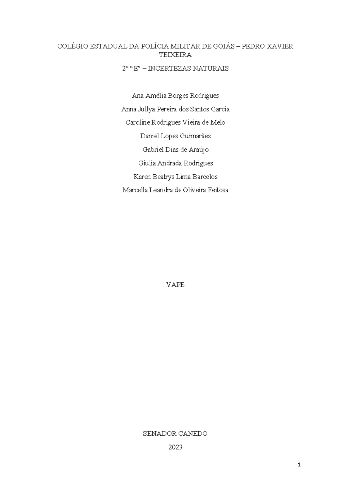 Trabalho biologia - COLÉGIO ESTADUAL DA POLÍCIA MILITAR DE GOIÁS