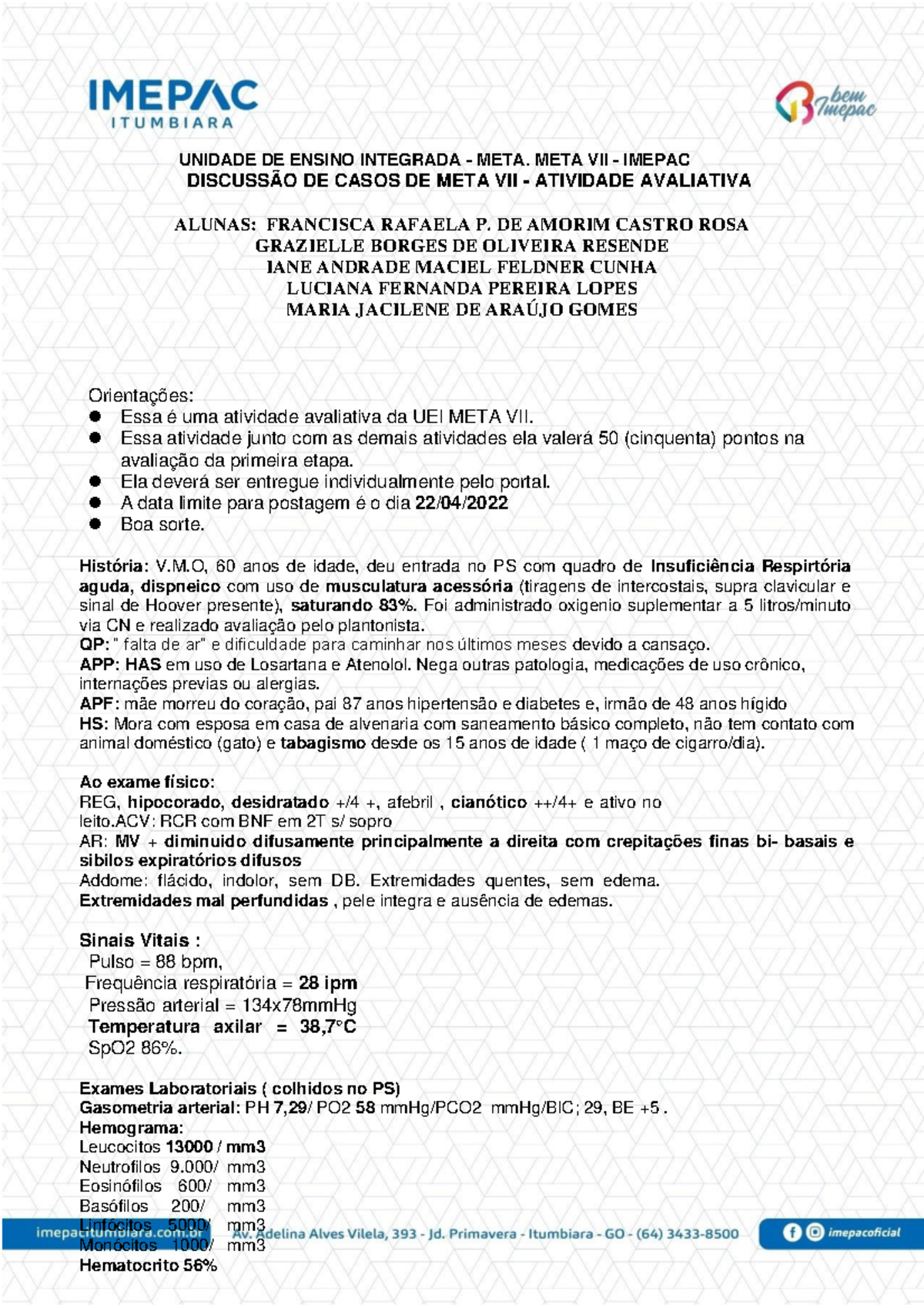 2- Universidade Federal do Rio Grande do Norte -UFRN. 3- Universidade de Caxias do Sul – UCS. 4-InstitutoMasterdeEnsinoPresidenteAntônioCarlos– IMEPAC. 5- Universidade do Oeste Paulista – UNOESTE. 6- Faculdade de Medicina de Petrópolis – UNIFASE.