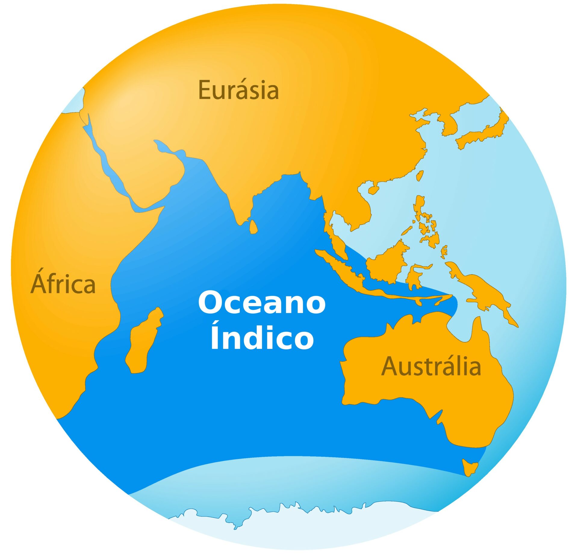 OoceanoÍndico, quesedistingue por suas dimensões relativamente reduzidas em comparação com as dooceanoPacífico ou dooceanoAtlântico, estende-seem sua maior parte em hemisfério Australeéfechado ao norte pela Ásia. Largamente aberto ao sul, sob influência da monção asiática, tem a forma de um triângulo, cujas linhas medianas são formadas por dorsais oceânicas