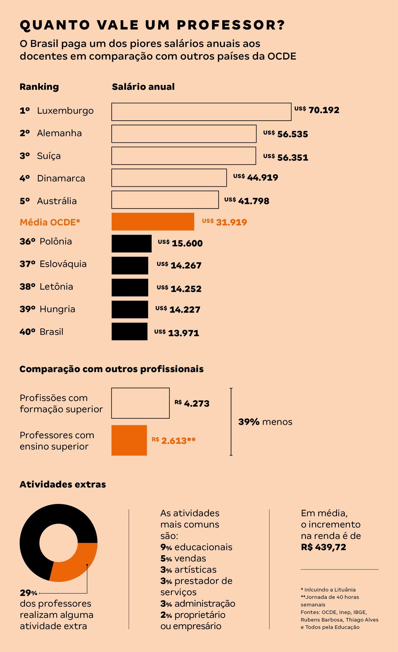 Quem ganha maisProfessordeescolapública ouparticular? ouvir: Levantamento mostra que, em média, professores deescolasparticulares recebemsaláriosinferiores ao novo piso nacional do magistério emescolaspúblicas, que neste ano chegou a R$ 3.845. As menores médias salariais nas particulares estão entre professores daeducaçãoinfantil, comsaláriosde R$ 2.250.